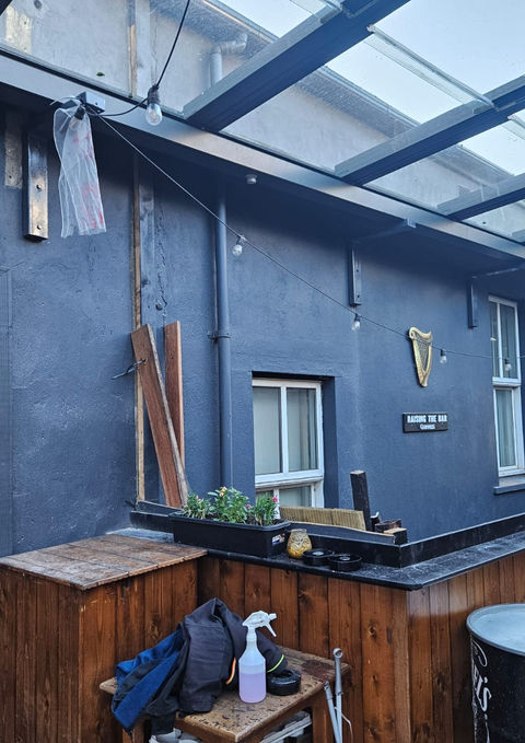 Installation of a transparent glass roof for a commercial property. Completed as part of Job 20241022.