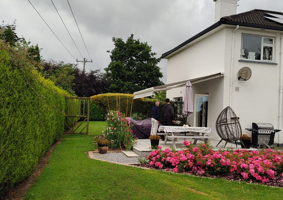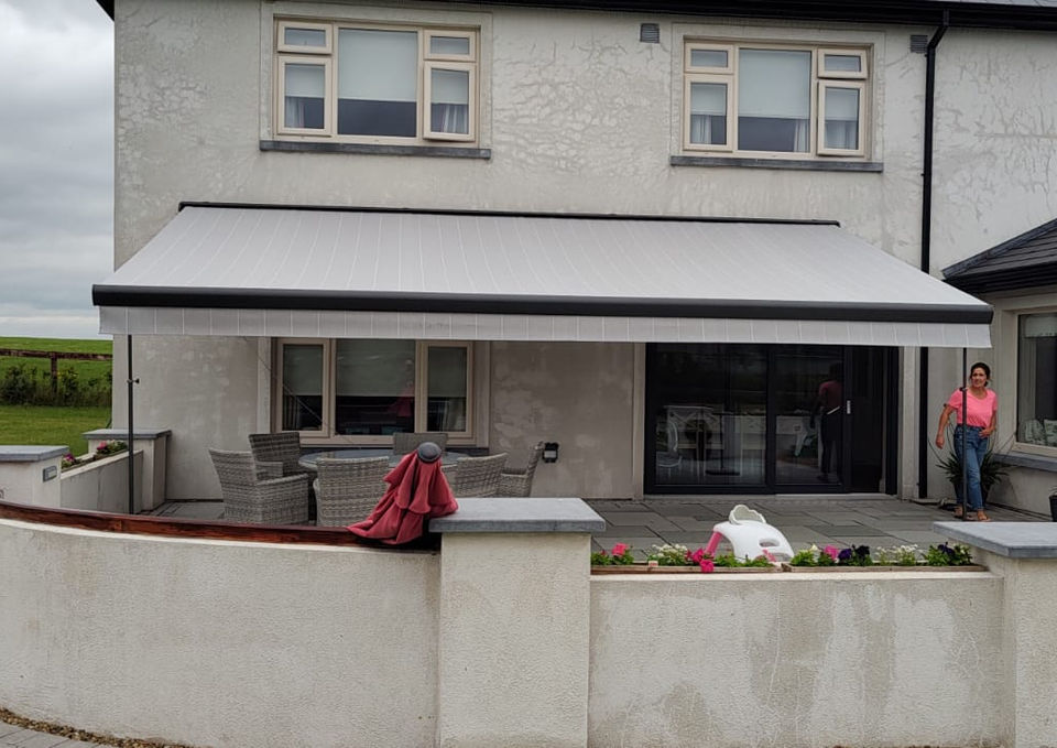 Installation of a light grey retractable awning for a residential property. Completed as part of Job 20230627.