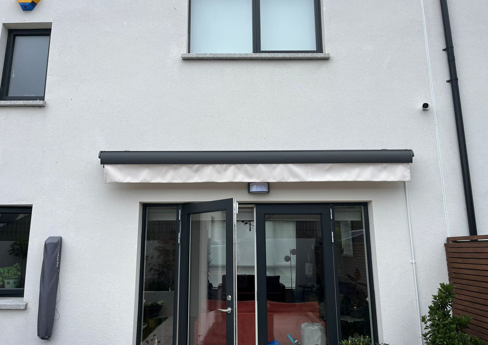 Installation of a white retractable awning for a residential property. Completed as part of Job 20230808.